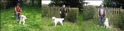 Die letzte Woche war ereignisreich,es gibt viel Neues zu berichten: Die kleinen G' s sind ausgeflogen und haben ihr neues Zuhause erobert! Ich vermisse sie sehr, es ist so still geworden... Auf ---> dieser Seitegibt es aber noch die letzten Fotos von ihnen. Wie immer gibt es auch diesmal die Abschiedsbilder der Zwerge mit ihren neuen Familien, die ich hiermit herzlich grüße - bis bald!! Am Samstag hatten wir dann unser F- Wurf- Ahnentafeltreffen: Zuerst wurde der Tierpark Fauna erkundet und dann gab es hier bei Kaffee und Kuchen die Ahnentafeln. 29 Personen und 16 Hunde hatten ihren Spaß :-) Einige Fotos dazu gibt es ---> Hier